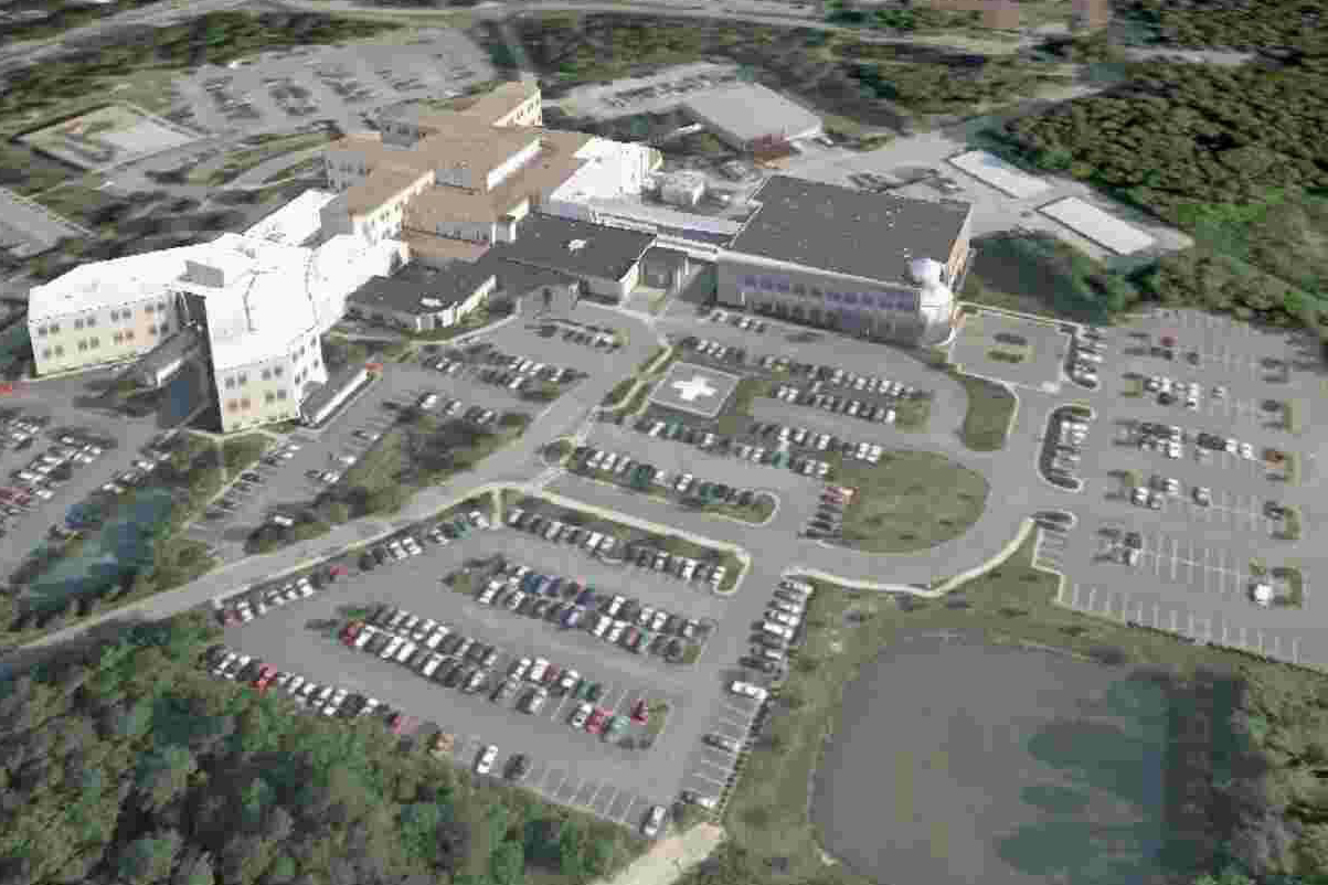 Hazards: Parking Lot, Poles, Tower (E), Trees (N,W), KPHF traffic sometimes routes over hospital.