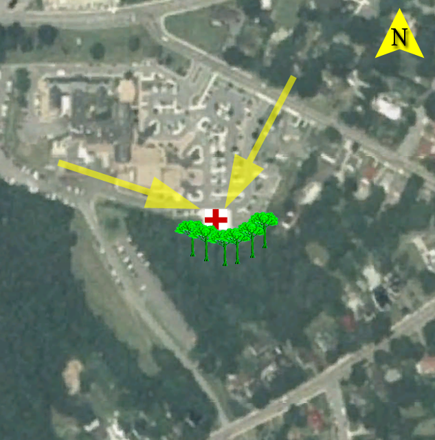 | Hazards: | 1. Tree (S,E): Very tall trees located along the south and east edges of the parking lot. There is a set of tall trees that rise a good 30' above the rest of the trees along the east treeline. 2. Tower (NE): 1 mile NE of the hospital. Unlit cell towers <200'agl | ||||||||||||||||||||||||||||||||