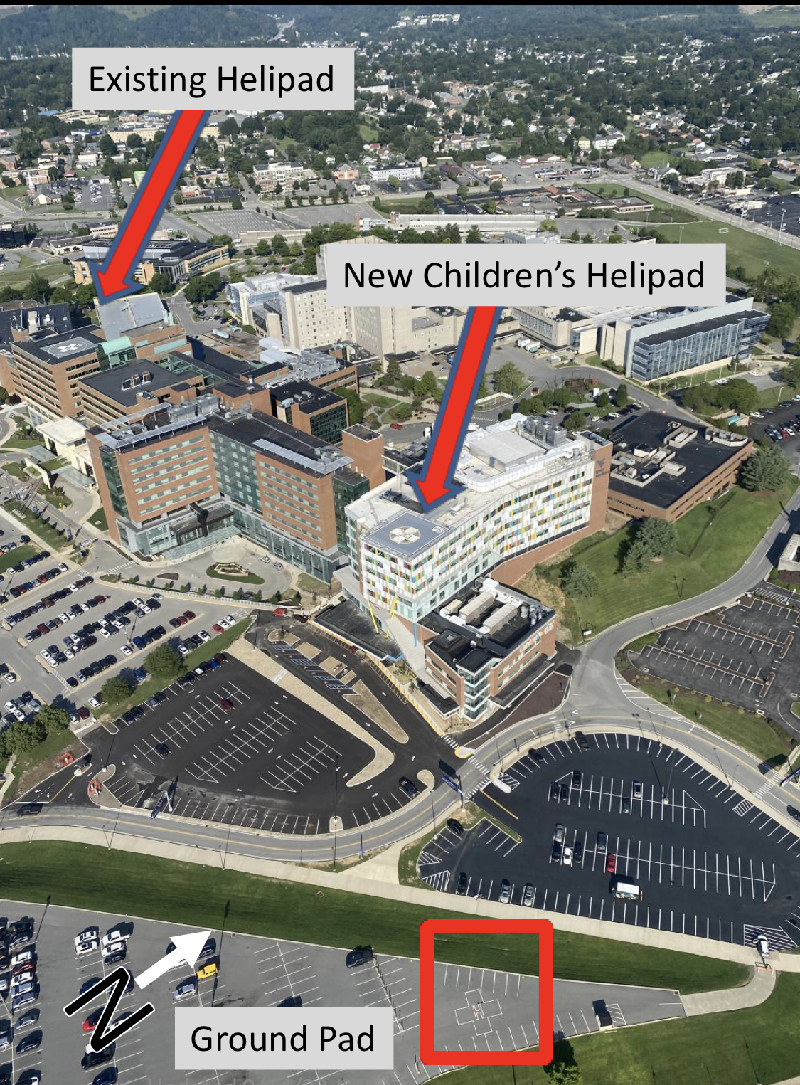 | Location/Description: | New Children's Wing Helipad. This pad is rated for 15,000 lbs and 55' rotor diameter. See attached updated imagery. | ||