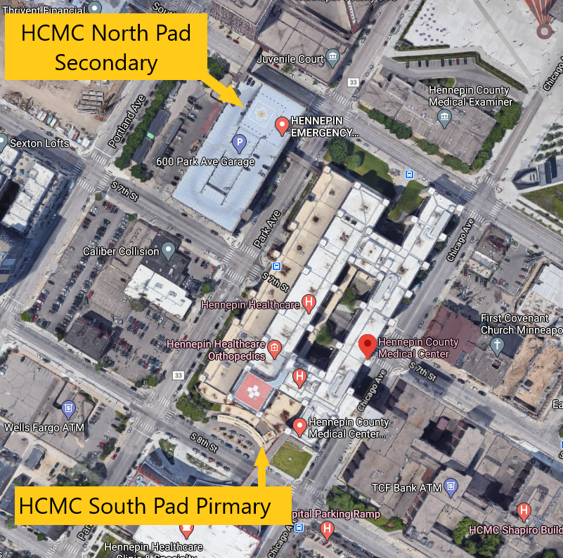 | Location/Description: | Primary Helipad on west side HCMC Rooftop Secondary Helipad location on top of 9 story parking ramp 1 block north of HCMC | ||||||||||||||||||||||||||||||||