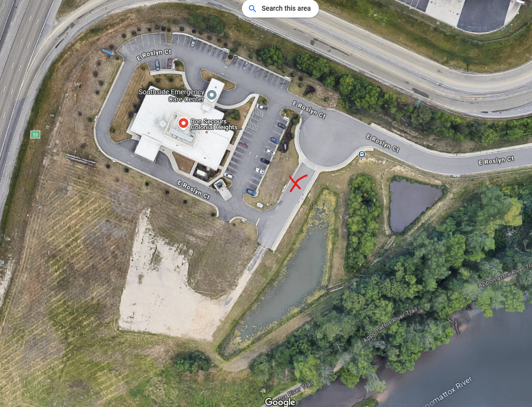 | Comments: | Land on the driveway to the east of facility. Local FD to set up LZ. Wires surrounding landing area. Nearest airport KPTB for WX, 8 NM southwest, AWOS 133.325. Also known as Southside ER Colonial Heights |