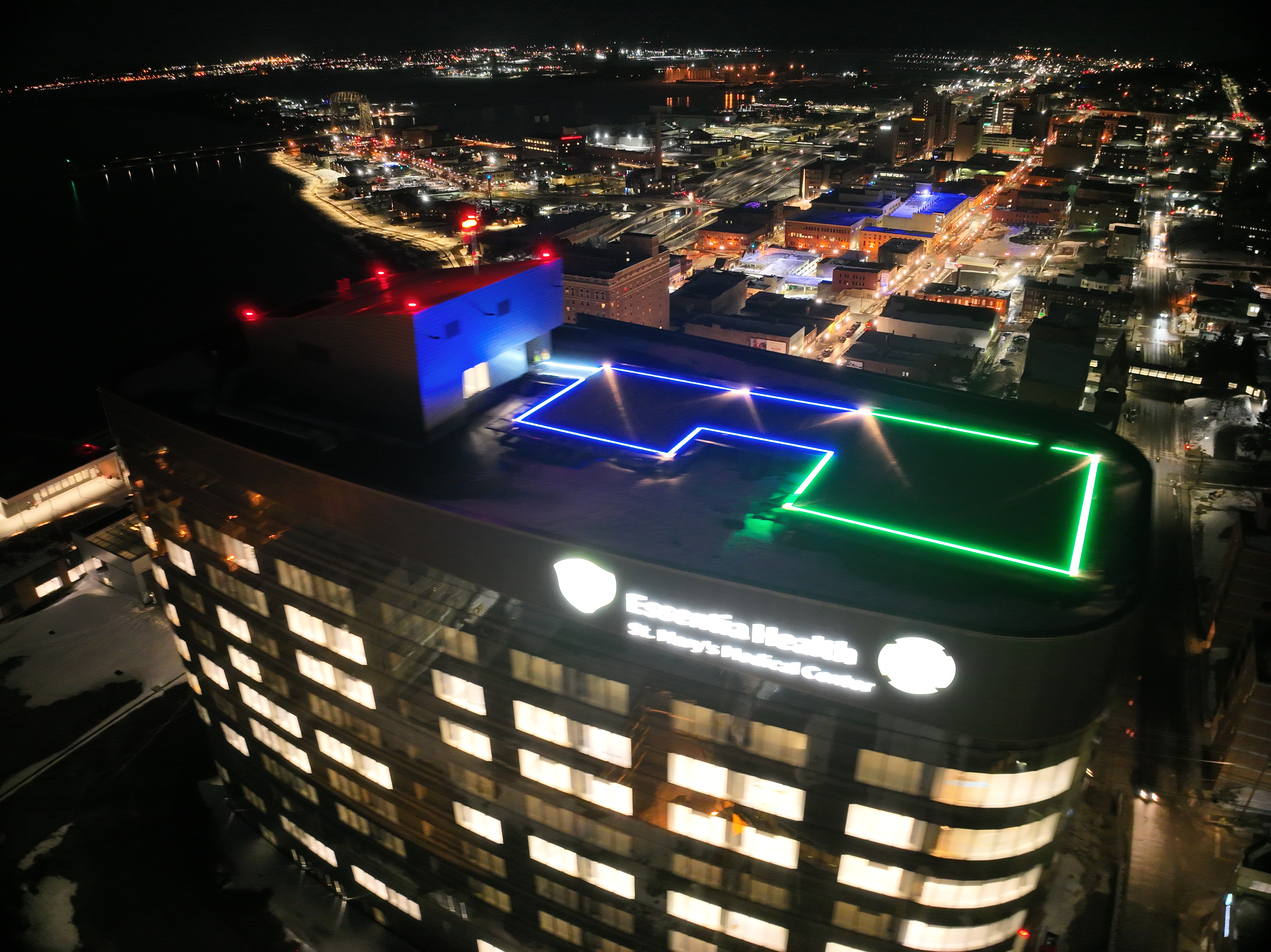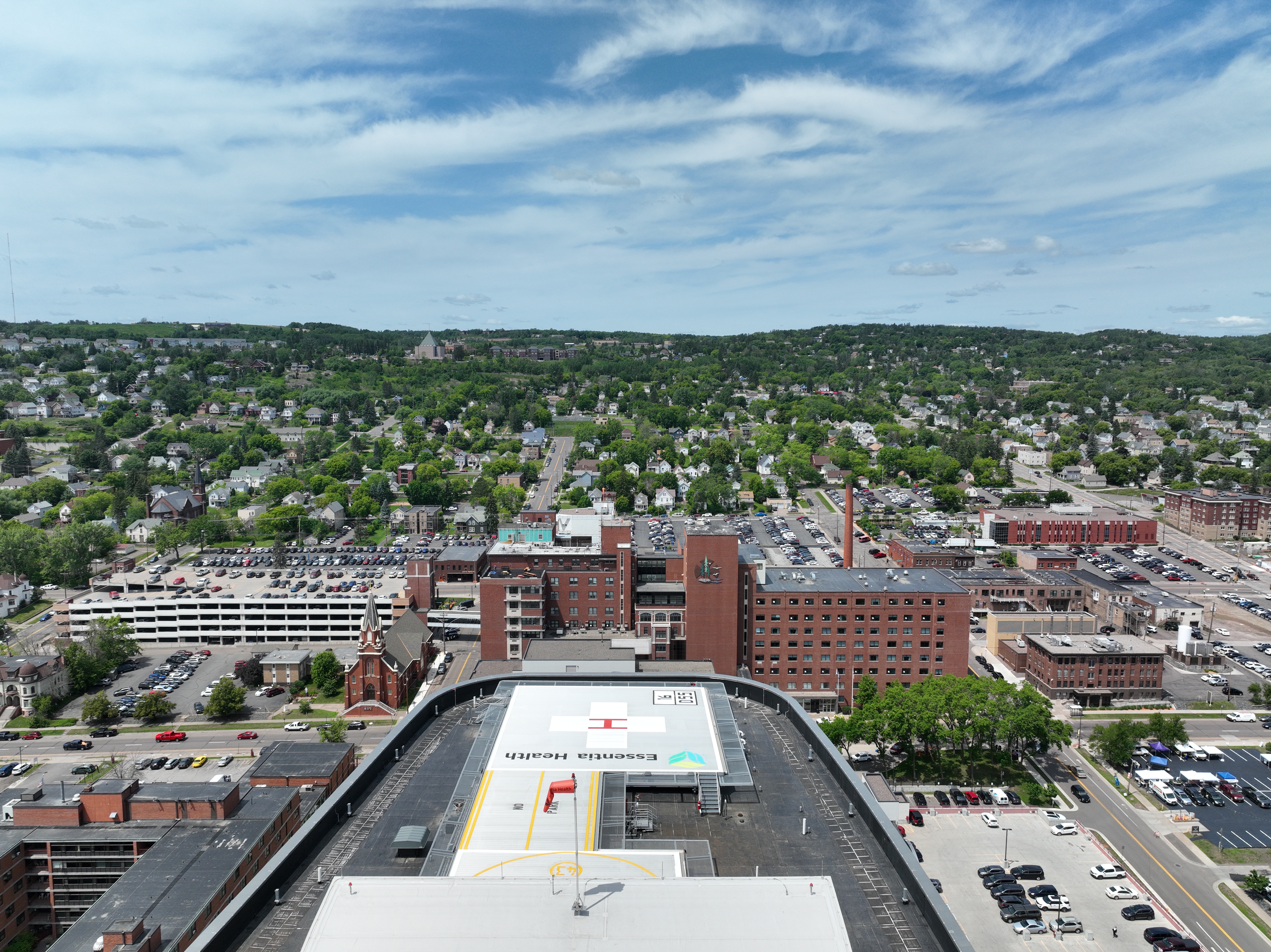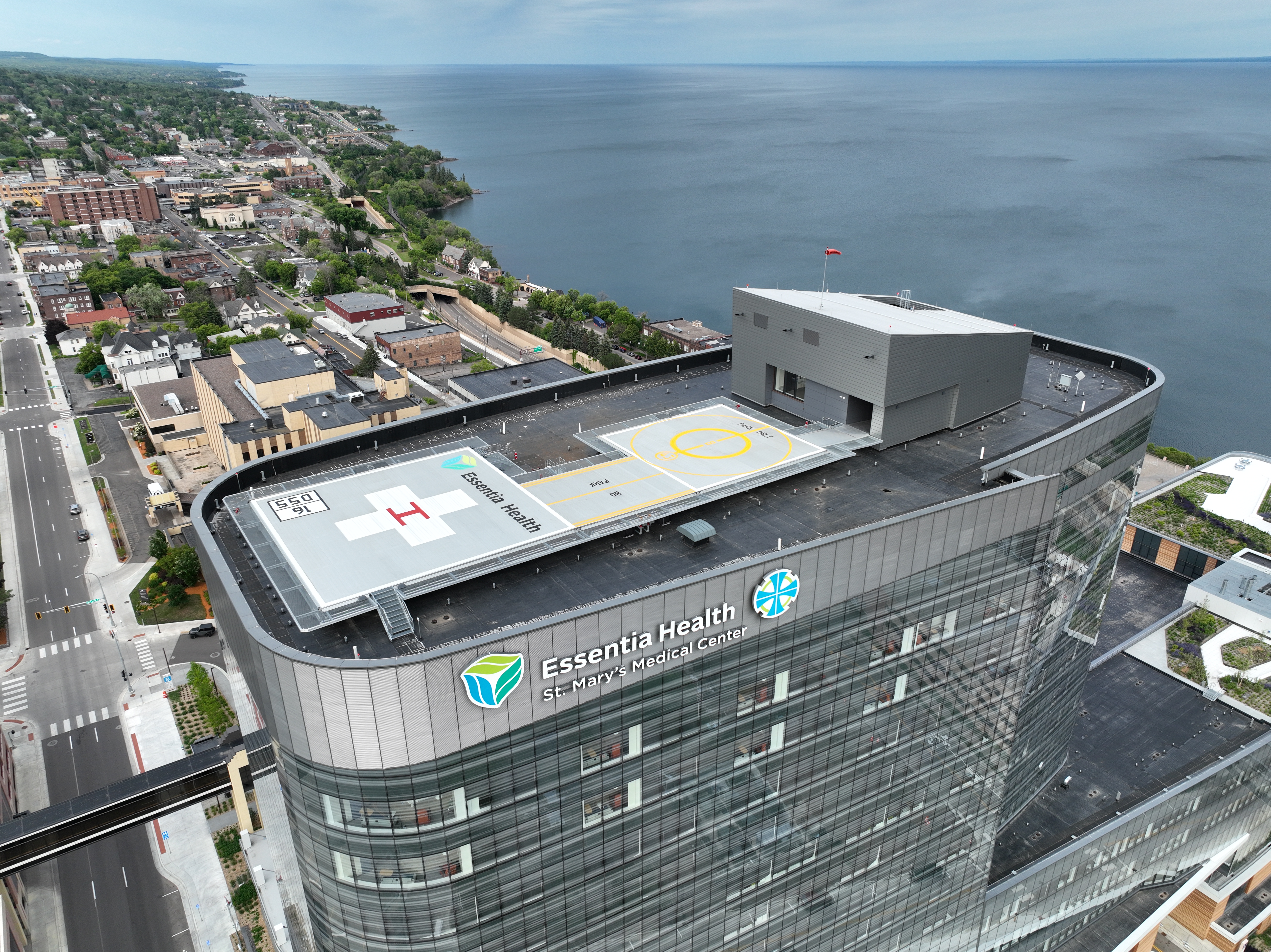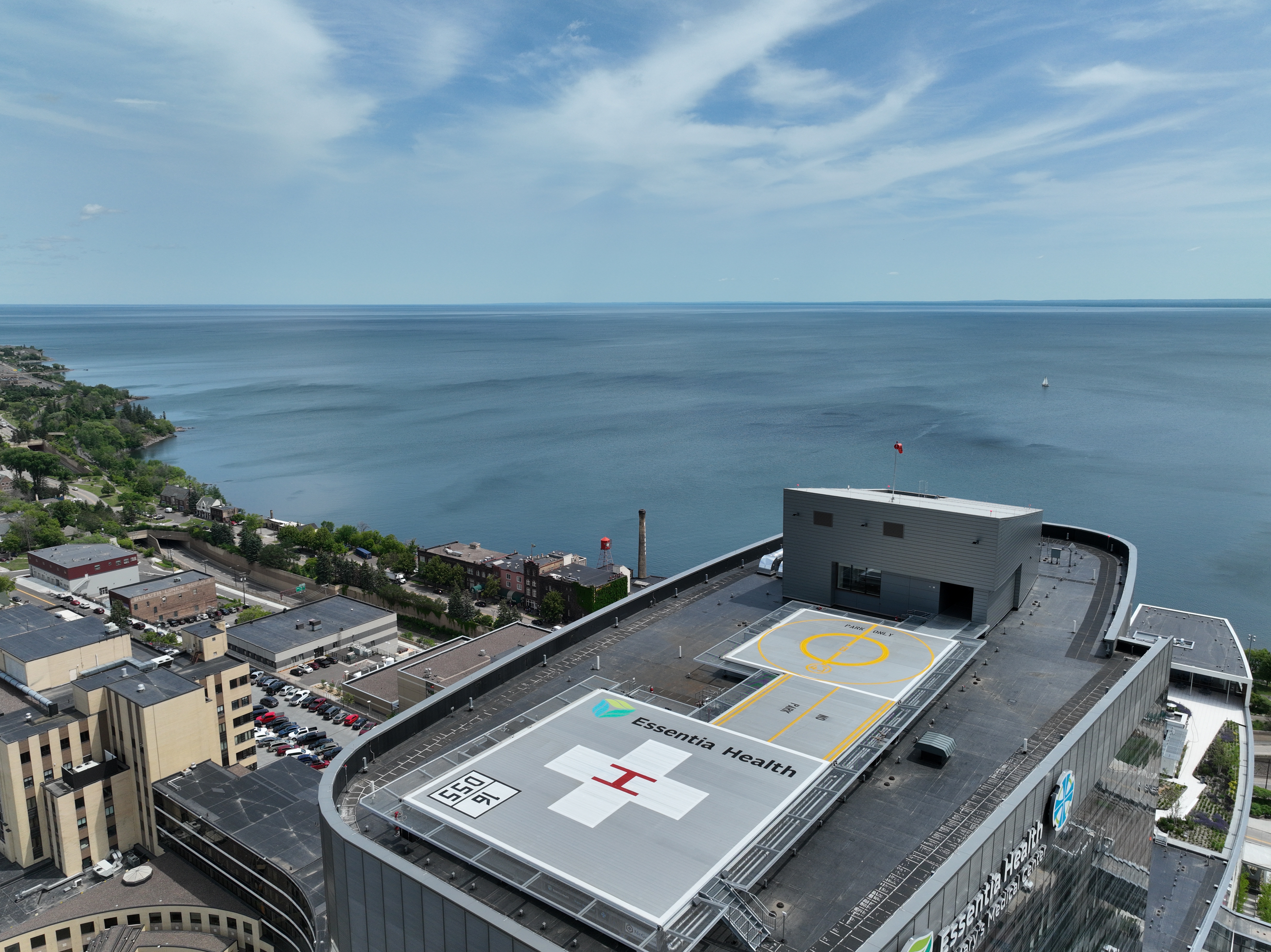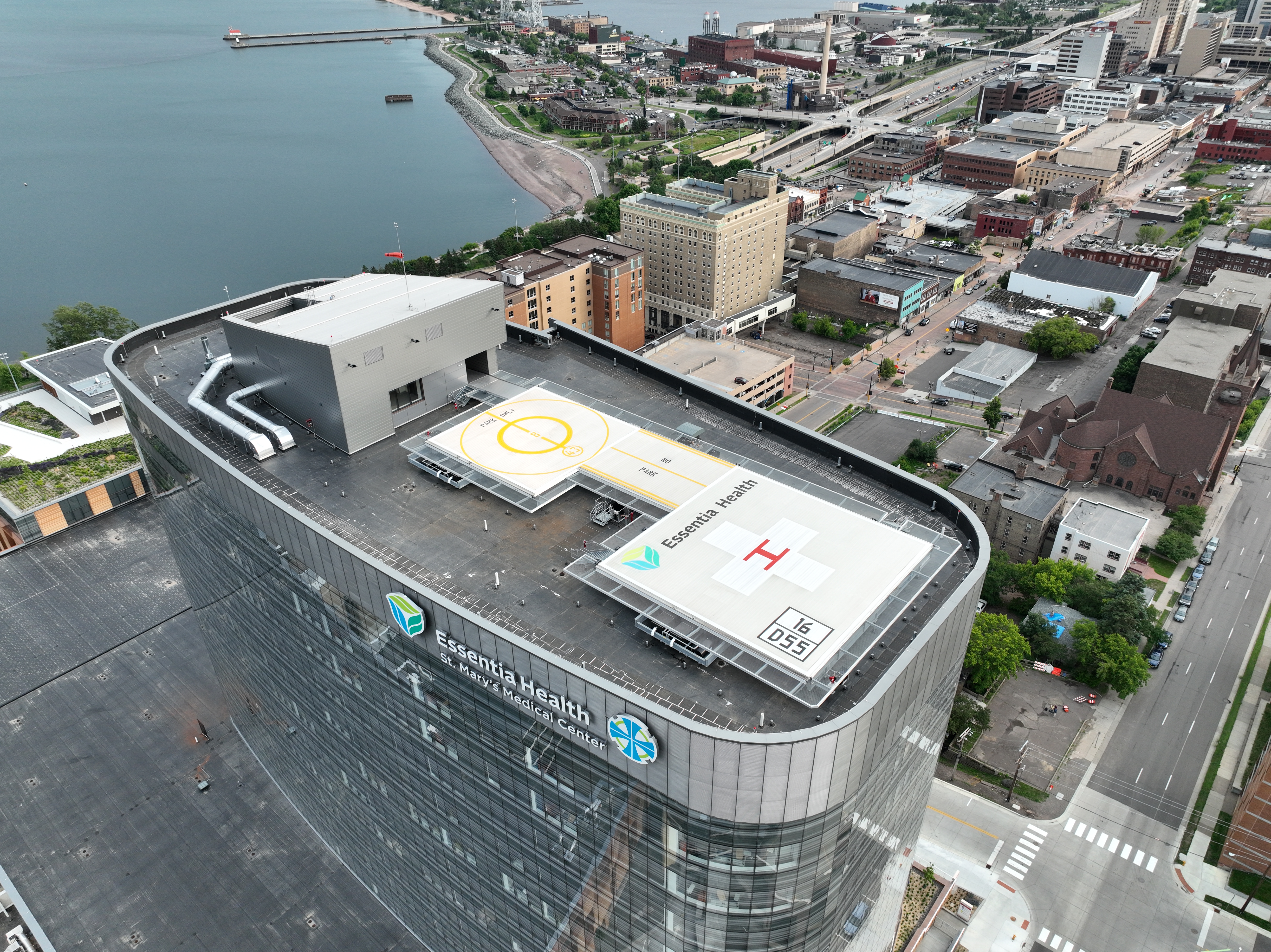 | Comments: | Weight restrictions: Helipad: 16,000 pounds Parking pad: 8,000 pounds • Guidelines for parking pad: The pilot will determine if the aircraft is able to taxi to the parking pad. Exceptions prohibiting taxiing to the parking pad include high winds, size of aircraft (more than 8,000 pounds). A helicopter cannot land or takeoff from the parking pad, they must taxi back to the helipad for departure. • Automatic weather operating station (AWOS): Sky Harbor is closest. Duluth Airport is also an option. • Fire suppression: The fires suppression is automatic. There is a pull station that activates a foam suppression system. • Exit signage identifies a stairway for emergency egress. • New/different procedures for loading/offloading: Pilot will need to inform Essentia Health if and when to approach the aircraft. • If pilot is going to depart helipad to get fuel while crew is in hospital. They must contact St Mary’s Communication Center on 123.050 to ensure they are cleared to depart helipad. • Lighting Control: When flying into the heliport lighting control will be handled by Essentia Health St Mary's Communication Center. If there is a problem pilots have the ability to turn on heliport lights utilizing the aircraft’s VHF 123.05. The pilot then keys the transmitter either 3 times for perimeter lighting, or 5 times to add the corner spot lights, or 7 times to turn system off. All clicks should be in quick succession to turn operate the heliport lights – either individually or incrementally in conformance with FAA specification L-854. Lights are turned off automatically using a timer. • Ventilation system: Mic clicks that turn on helipad lights also close the ventilation system to outside air on the roof of the hospital. o If the helipad lights are illuminated, then the ventilation system is secure for helicopter operations. |